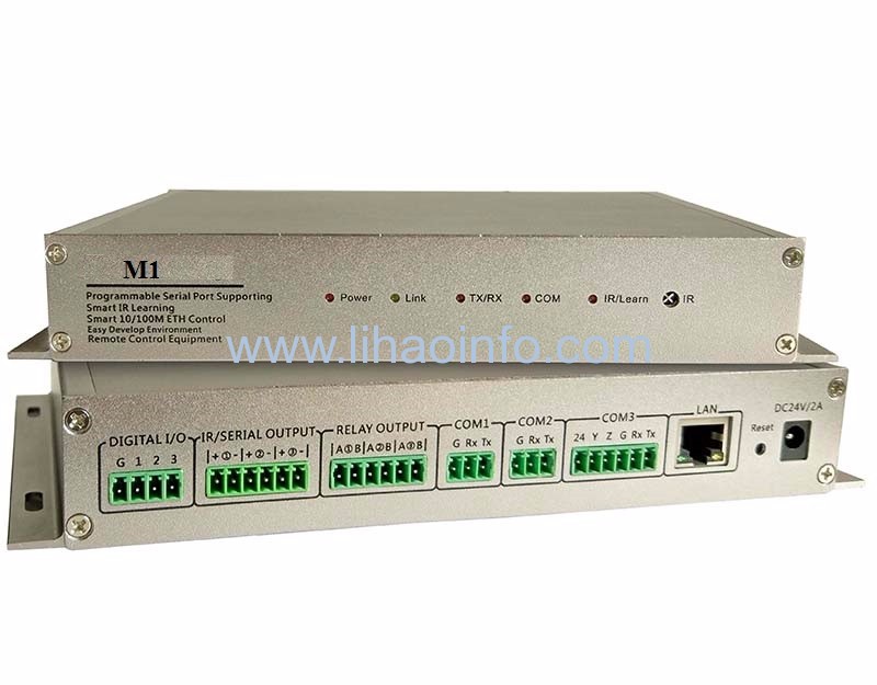 ? 1路TCP/IP 10M/100M以太網接口(TCP/IP,RJ45接口),用于管理本機(包括設定本機網絡參數、本地程序上傳、紅外學習控制等)及應用時收發命令;